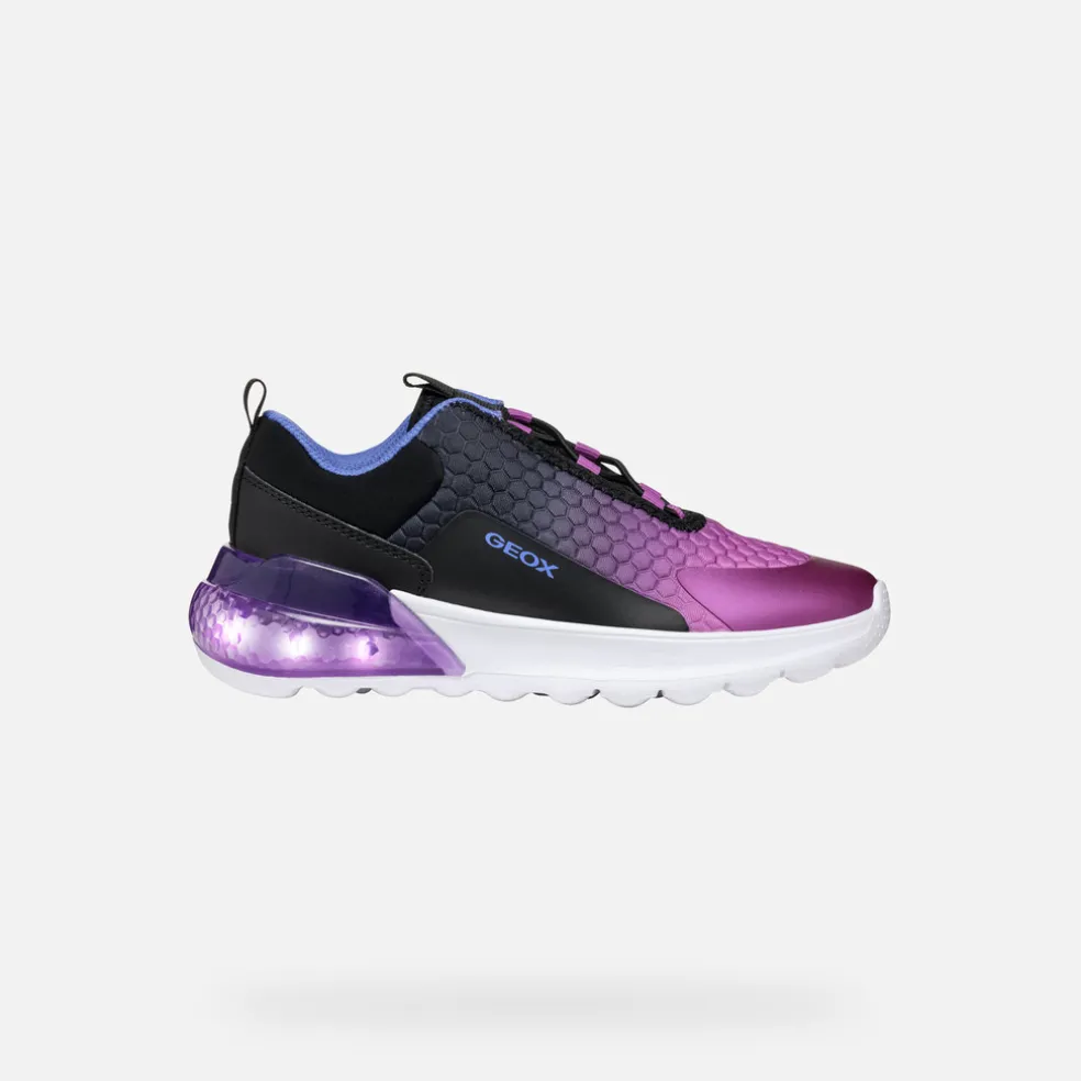 Sneaker low-cut junior d’ispirazione active, ammortizzata, flessibile e leggera. In questa versione che abbina nero e viola, Activart Illuminus infonde energia e vivacità a ogni look grazie alle speciali luci effetto caleidoscopico nella suola. Realizzata in elastan stampato rifinita con resistente e protettivo materiale termoplastico TPU, è ideale per abbinamenti sportivi e moderni.