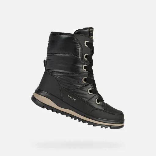 Stivale bambina, impermeabile e ideale per tutti i giorni. Con Adelhide ABX le più giovani possono stare comode e calde senza per questo rinunciare allo stile. In nylon perlato e materiale effetto pelle color nero, questo stivale impermeabile e traspirante offre protezione ai piedi e regala un look contemporaneo agli outfit quotidiani. Ideale per affrontare anche le temperature più gelide, fino a -30°C.