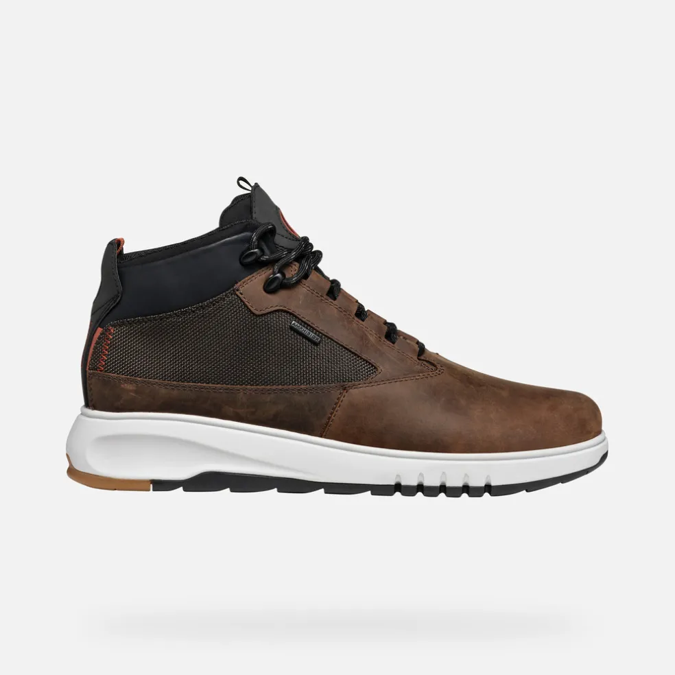 Stivaletto uomo allacciato, impermeabile e super traspirante, dal look tecnico e grintoso. Qui in un classico mix di marrone e testa di moro, è perfetto per le gite fuori porta, grazie alla sua tomaia con dettagli hiking realizzata in pelle pull up e tessuto. Progettato per il tempo libero e adatto anche in caso di maltempo, Aerantis™ 4X4 ABX sfoggia un design d’ispirazione active innovativo e versatile.