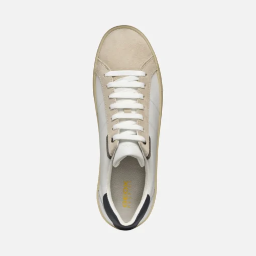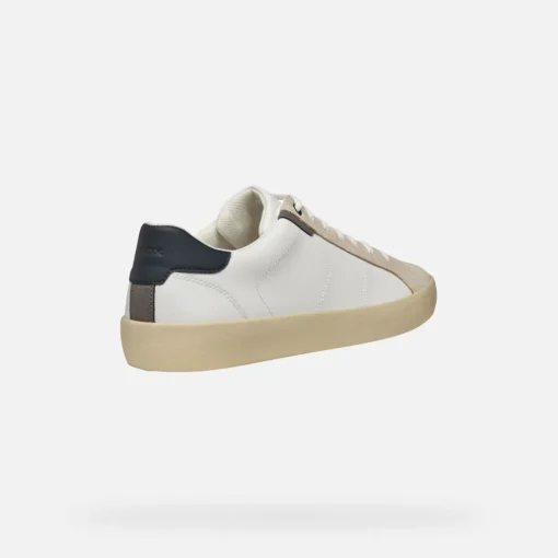 Sneaker low-cut uomo leggera e traspirante, dallo stile contemporaneo e dal dna quotidiano. Realizzata in pelle ricoperta e scamosciato, è qui proposta in versione bianca con dettagli beige chiaro a contrasto. Caratterizzata da un un classico design di ispirazione tennis court, Affile completa con un tocco sportivo ma ricercato gli abbinamenti casual.