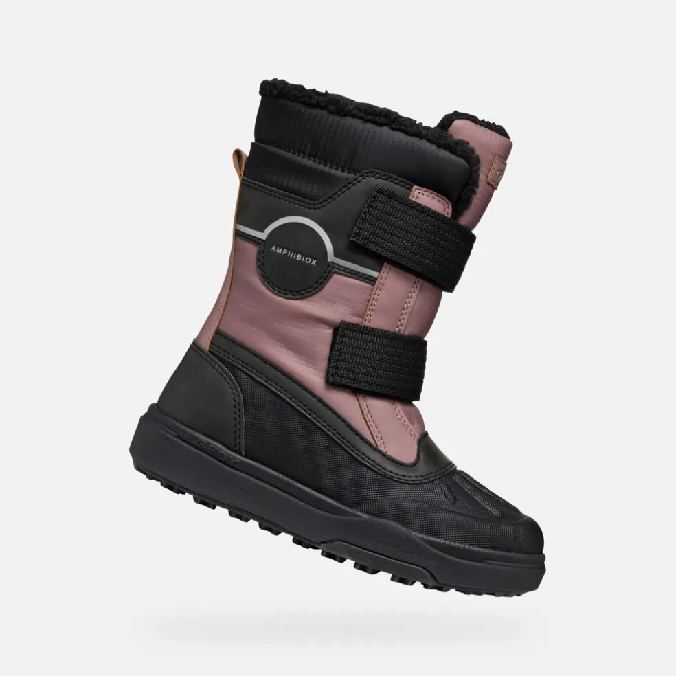 Stivale junior dal look outdoor caldo e confortevole, ideale per le giornate più fredde. Qui presentato in rosa scuro e nero, Bunshee PG ABX è facile da indossare e da regolare grazie al pratico doppio strap. Impermeabile e dotato di una speciale suola ultra aderente, è realizzato in materiale effetto pelle cerata e nylon.