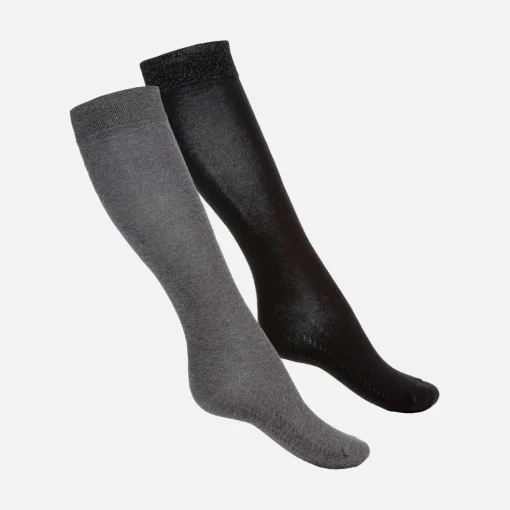 Set di calzini lunghi donna, realizzati in misto cotone e viscosa elasticizzato. Morbidi e traspiranti, qui proposti in nero e in grigio scuro, sono la perfetta combinazione di stile classico e rilassato, adatti anche come gambaletti da stivale. Pensati per essere utilizzati in sinergia con le nostre calzature, massimizzano i benefici offerti dai sistemi e dalle tecnologie ideati da Geox.Ogni confezione contiene due paia di calzini.Dettagli in lurex sul bordo a costine.
