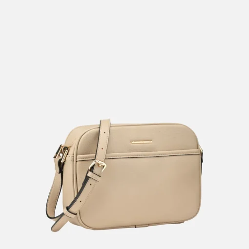 Funzionale borsa donna a tracolla dallo stile contemporaneo, perfetta in mille occasioni. Qui presentata in una versatile ed essenziale variante taupe, è realizzata in un materiale effetto pelle bottalata dal look formale al punto giusto. Le sue dimensioni contenute rendono Celestye una postina ideale per la città e per risolvere con disinvoltura anche gli outfit day-to-night.Indosso a tracolla o a spalla.Chiusura con zip in metallo.Tracolla regolabile con fibbia.Tasca anteriore con bottone magnetico.Tasca posteriore con zip in metallo.Placchetta metallica con elegante e discreta personalizzazione Geox.Due tasche interne di cui una con chiusura a zip.Accessori metallici con finitura oro.Dimensioni: L 16 cm x W 6 cm x H 19 cm.