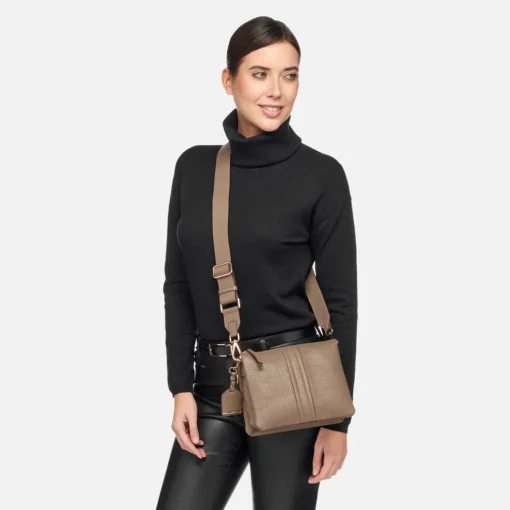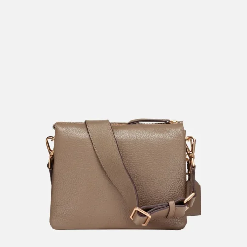 Pratica borsa donna a tracolla dalle linee pulite, ideale per completare gli outfit quotidiani. Realizzata in morbida pelle bottalata, è qui declinata in un’intramontabile tonalità taupe, che si presta ad infinite combinazioni di look. Clarissy è una postina contemporanea, perfetta sia per attraversare ogni giorno la città che per passeggiare nel weekend in totale relax.Indosso a tracolla o a spalla.Chiusura con bottone a calamita.Tracolla regolabile.Due tasche interne di cui una con zip.Portachiavi removibile con targhetta in pelle.Accessori metallici con finitura oro.Dimensioni: L 22 cm x W 7 cm x H 19 cm.