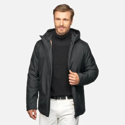 Parka uomo di media lunghezza, garanzia di comfort e massima impermeabilità anche sotto la pioggia intensa. Qui proposto in nero, Clintford è un giubbotto con cappuccio protettivo, che si abbina con disinvoltura ai look cittadini. Realizzato in resistente twill di poliestere riciclato, è dotato di imbottitura in calda ovatta riciclata EcologicWARM.