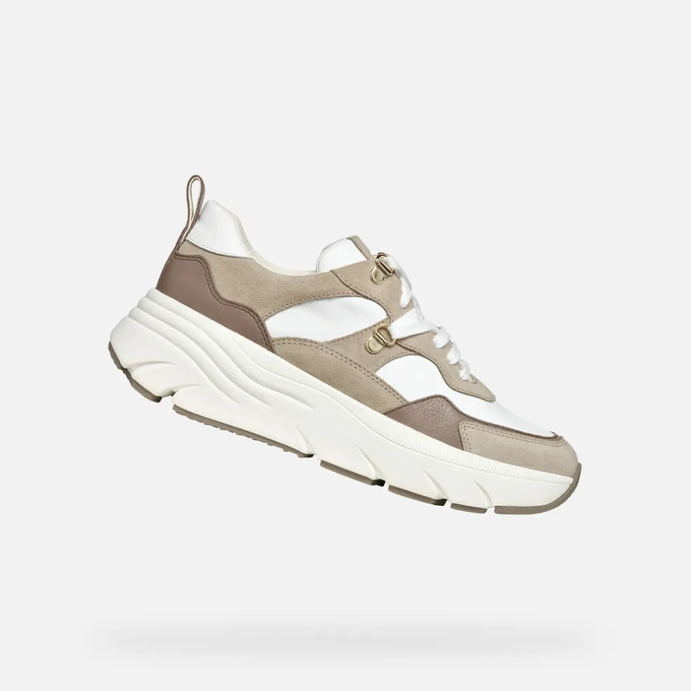 Comoda e traspirante sneaker donna che reinterpreta l’estetica running in chiave urban e contemporanea. La sua accattivante tomaia in nappa e scamosciato gioca con i contrasti ed è qui presentata in una raffinata variante che abbina bianco e beige. Dotata di una suola chunky di grande tendenza ispirata al mondo active, Diamanta è pensata per aggiungere un tocco unico agli outfit casual.