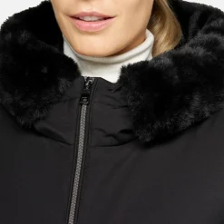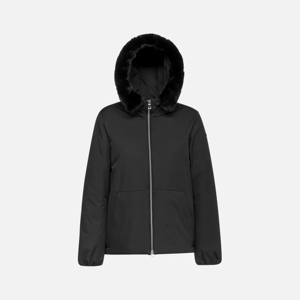 Bomber liscio donna dal design femminile e alla moda, perfetto per un uso quotidiano. Qui declinato in nero, Diamond presenta comodo cappuccio con bordo rifinito in faux-fur e fodera interna con grintosa stampa animalier all over. Realizzato in twill di poliestere stretch idrorepellente e resistente al vento, è dotato di calda imbottitura in ovatta riciclata EcologicWARM.