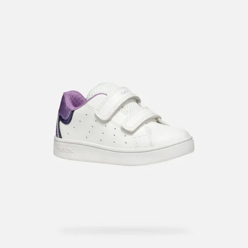 Sneaker low-cut baby con doppio strap d’ispirazione tennis, dal look sportivo contemporaneo. Proposta in bianco con dettagli a contrasto lilla, Eclyper è un modello imprescindibile del guardaroba casual di tutti i giorni. Perfetta per dare un tocco luminoso ai suoi outfit, è realizzata in materiale effetto pelle e vernice glitterata.