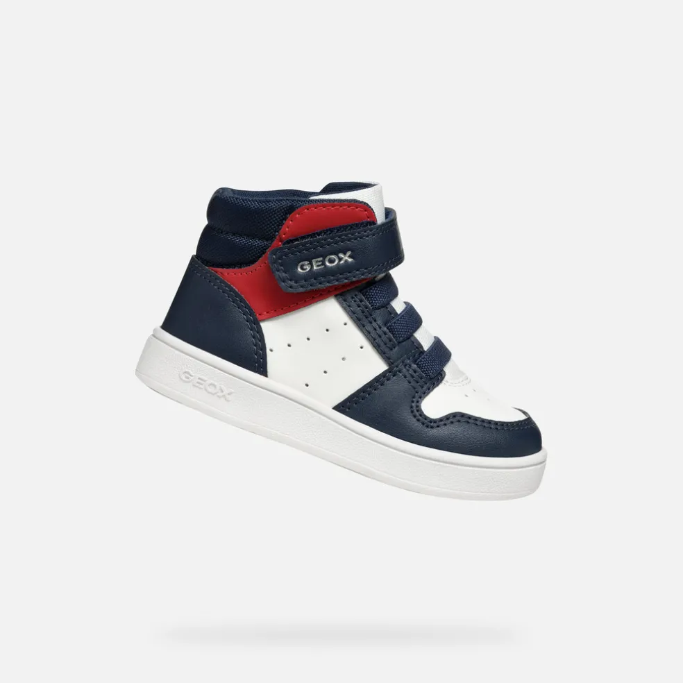 Sneaker mid-cut baby d’ispirazione basket, dal look sportivo contemporaneo. In questa versione che abbina bianco e blu navy, Eclyper è ideale per completare i suoi outfit casual quotidiani. Realizzata in materiale effetto pelle, è leggera e traspirante, per un mix di massimo comfort e stile.