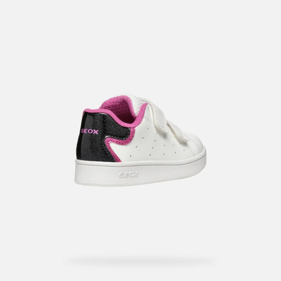 Sneaker low-cut baby con doppio strap d’ispirazione tennis, dal look sportivo contemporaneo. Proposta in bianco con dettagli a contrasto neri, Eclyper è un modello imprescindibile del guardaroba casual di tutti i giorni. Perfetta per dare un tocco luminoso ai suoi outfit, è realizzata in materiale effetto pelle e vernice glitterata.