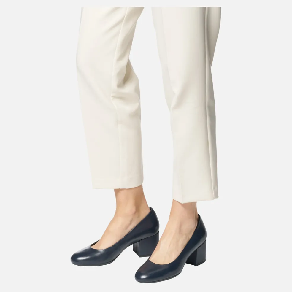 Leggera décolleté donna dallo stile sobrio ed elegante, che assicura benessere e traspirabilità. Qui presentata in un’impeccabile variante blu navy, vanta una tomaia in morbida nappa dal design essenziale, con comodo tacco largo. Eleana è una scarpa versatile e quotidiana, perfetta per completare gli abbinamenti formali cittadini e adatta anche per l’ufficio.
