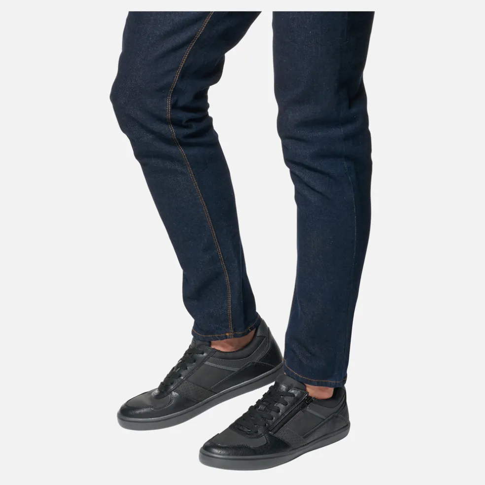 Sneaker low-cut uomo versatile e quotidiana, facile da calzare grazie alla sua pratica zip laterale. Proposta in un mix di materiale effetto pelle stropicciata e materiale effetto pelle, è qui presentata in un’intramontabile versione nera. Elver aggiunge una nota dinamica agli abbinamenti casual cittadini, garantendo allo stesso tempo comfort e traspirabilità.