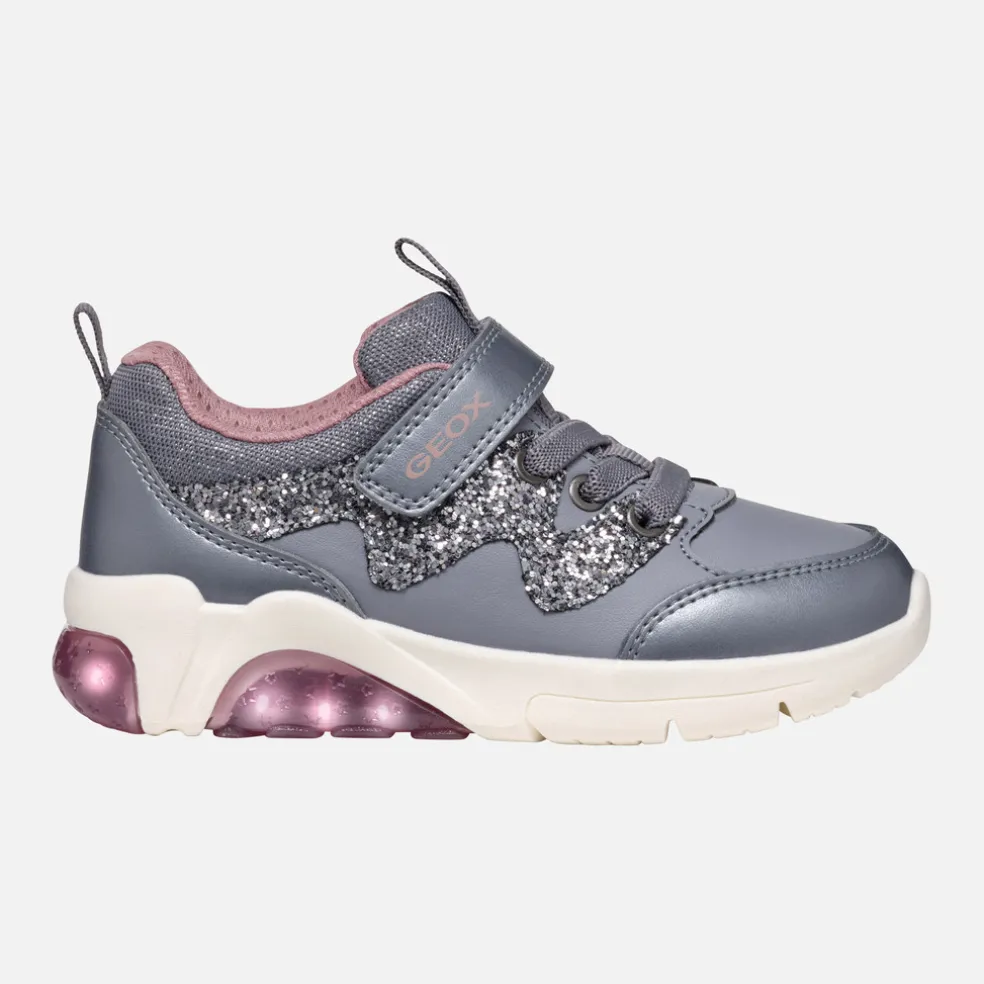 Sneaker low-cut bambina dal look active, romantica e femminile. Qui proposta in grigio e rosa con dettagli brillanti, Fadinlight arricchisce ogni outfit casual, a scuola o nelle occasioni di gioco. Realizzata in materiale effetto pelle e materiale effetto pelle perlato, è un mix di comfort e divertimento grazie alle luci integrate nella suola.