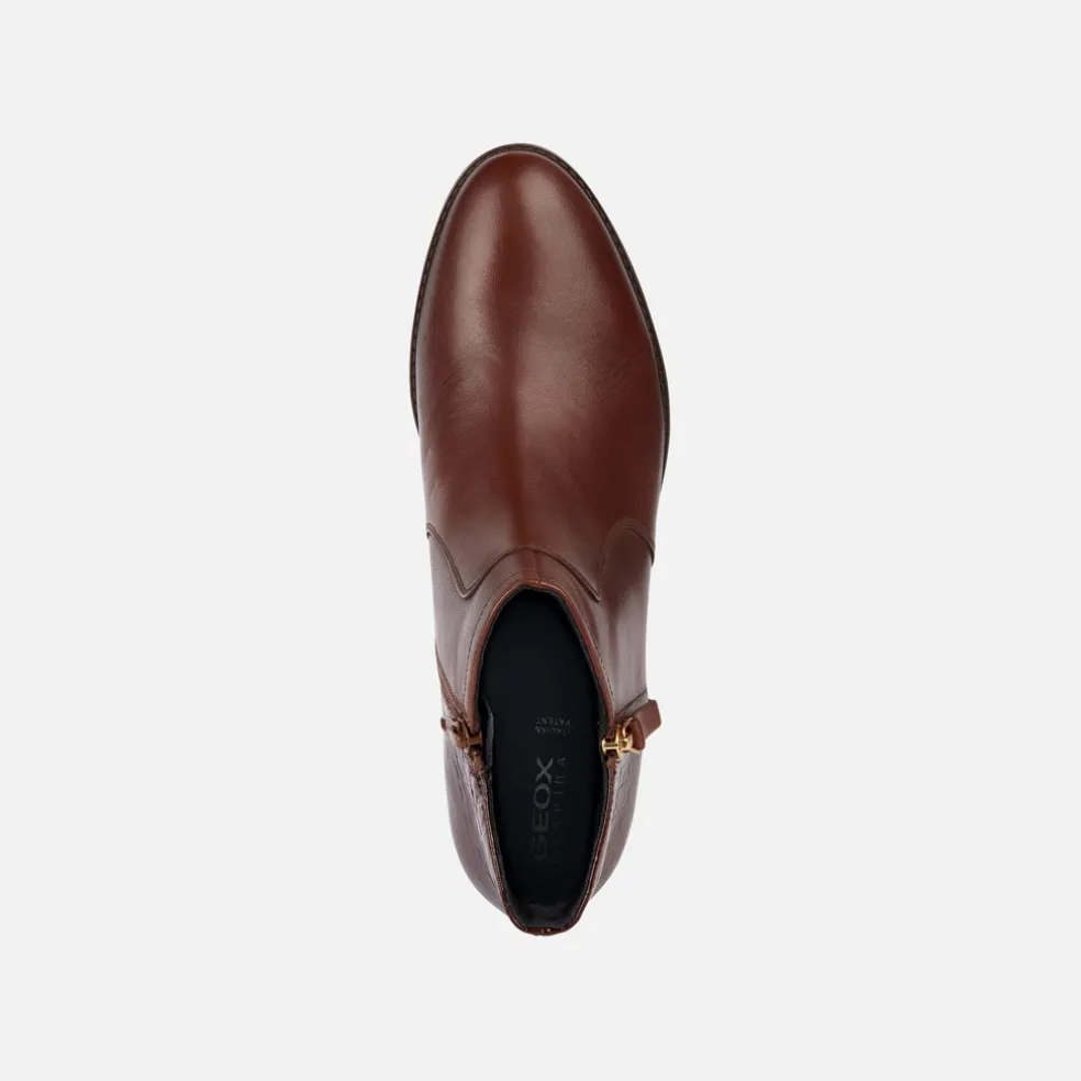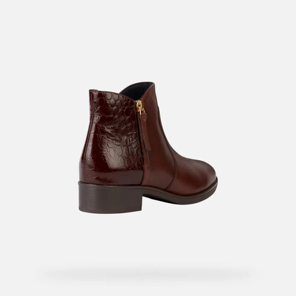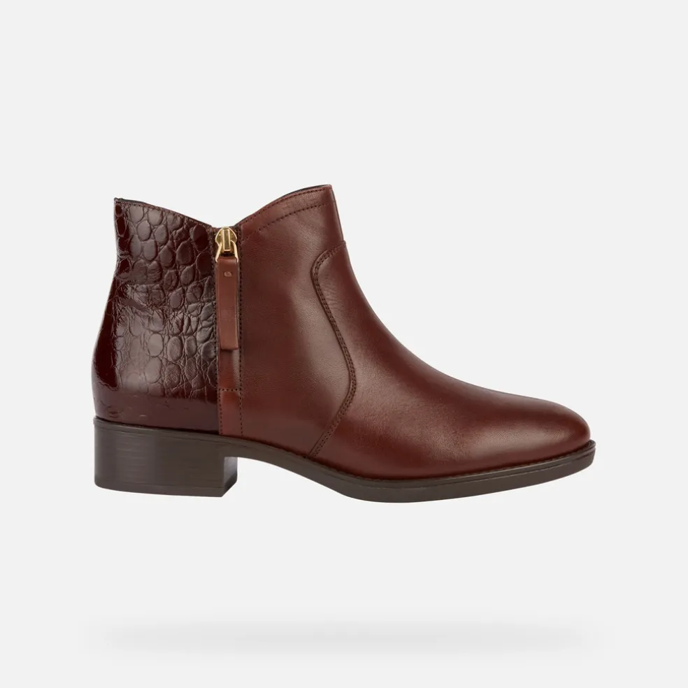 Traspirante stivaletto donna con comodo tacco basso, facile da calzare grazie alla zip laterale. Proposto in un mix di pelle liscia e pelle stampata effetto cocco, è qui declinato in una tonalità marrone dall’allure classica. Perfetto per la città, Felicity aggiunge un tocco di grinta anche agli outfit quotidiani più basici, senza dimenticare il benessere.