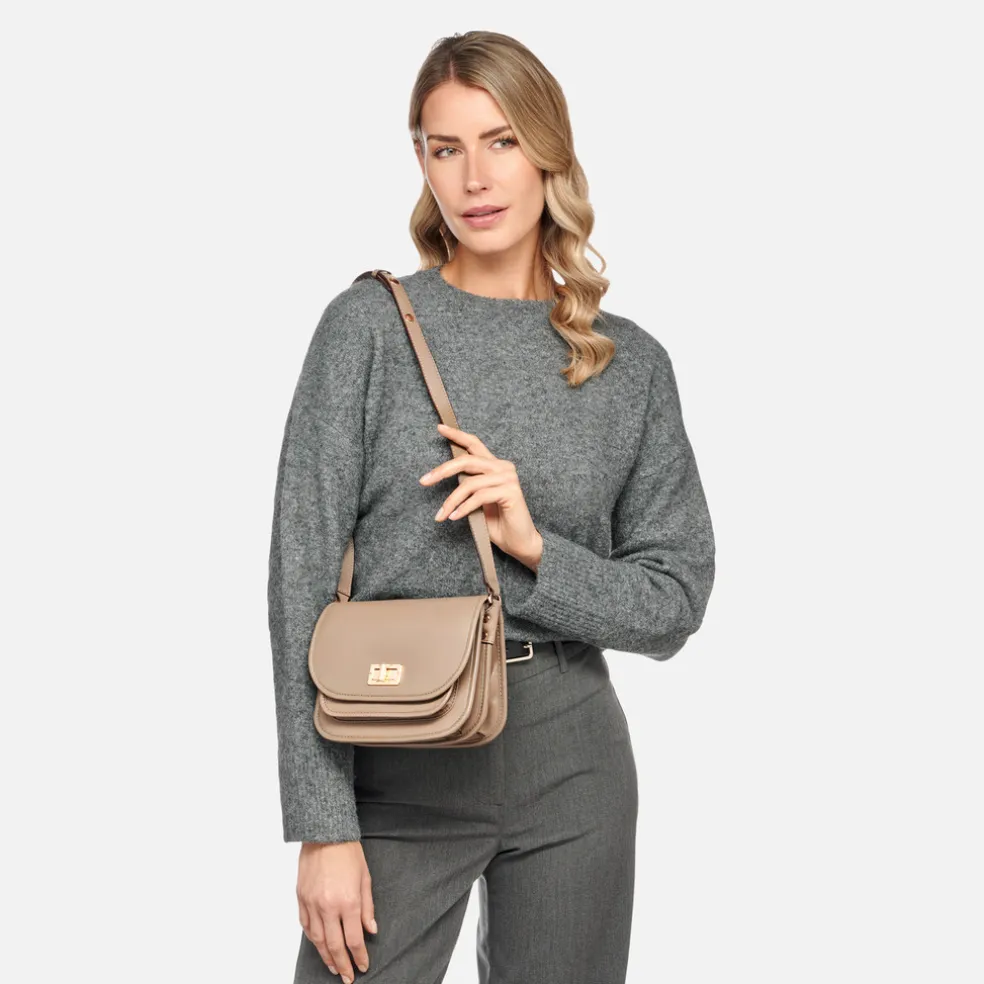 Funzionale borsa donna a soffietto, perfetta alleata per gli outfit day-to-night. Elegante e cittadina, è realizzata in morbida pelle liscia ed è qui declinata in una deliziosa tonalità taupe, facile da abbinare a qualsiasi look quotidiano. Dotata di una pratica tracolla regolabile e di una chiusura frontale a girello, Flavrie è un vero must-have del guardaroba contemporaneo.Indosso a tracolla e a spalla.Chiusura con patta e girello.Tracolla regolabile.Tre scomparti interni.Tasca frontale e tasta posteriore.Doppia tasca interna.Accessori metallici con finitura oro.Dimensioni: L 21 cm x W 8 cm x H 17 cm.