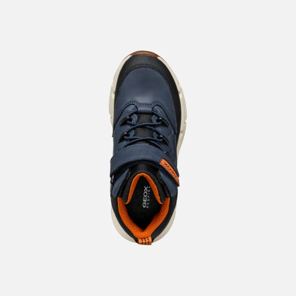 Stivaletto bambino caldo, protettivo e ammortizzato, dal design moderno d’ispirazione outdoor. Qui proposto in blu navy e nero, Flexyper Plus ABX vanta una suola in gomma leggera, flessibile e dal grip eccellente, che garantisce una camminata sicura e confortevole anche sul bagnato. Realizzato in materiale effetto pelle cerata e nylon con lacci e strap, è perfetto per le avventure all’aria aperta e le esplorazioni cittadine anche in caso di maltempo.