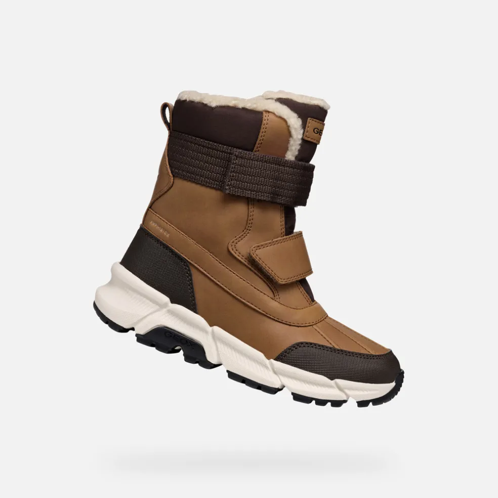 Stivaletto bambino caldo, impermeabile e ammortizzato, d’ispirazione outdoor. Qui proposto in tabacco e testa di moro, Flexyper Plus ABX vanta una suola in gomma dal grip eccellente, che garantisce una camminata sicura e confortevole anche sul bagnato. Realizzato in materiale effetto pelle cerata e nylon, assicura massima protezione da pioggia e freddo ed è dotato di pratica chiusura con doppio strap.