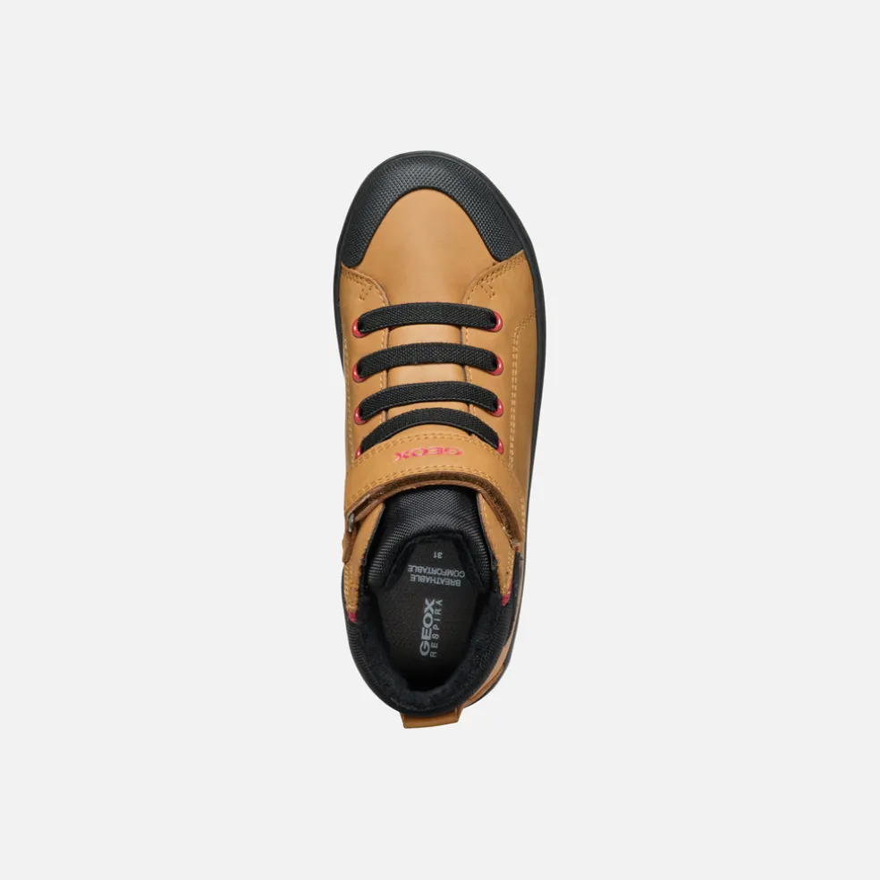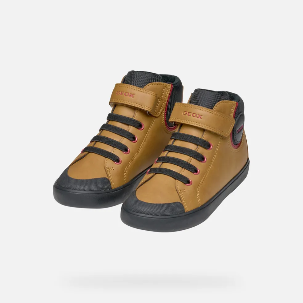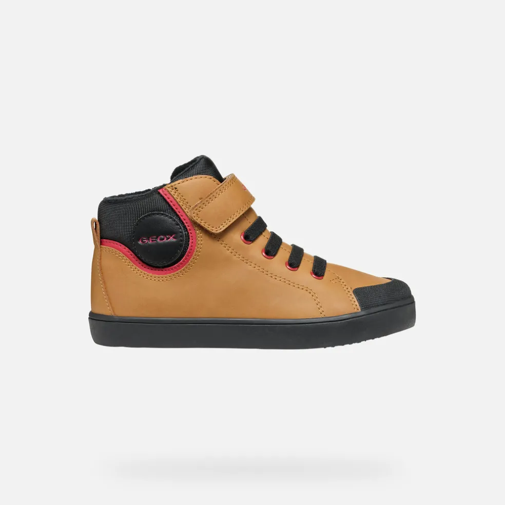 Sneaker mid-cut bambino comoda e leggera dal design pulito e alla moda. Qui declinata in giallo scuro e nero, Gisli è perfetta per accompagnare i suoi casual look, a scuola e nel weekend. Realizzata in materiale effetto pelle cerata e nylon, vanta una comoda chiusura con lacci e strap, per una calzata pratica e veloce.