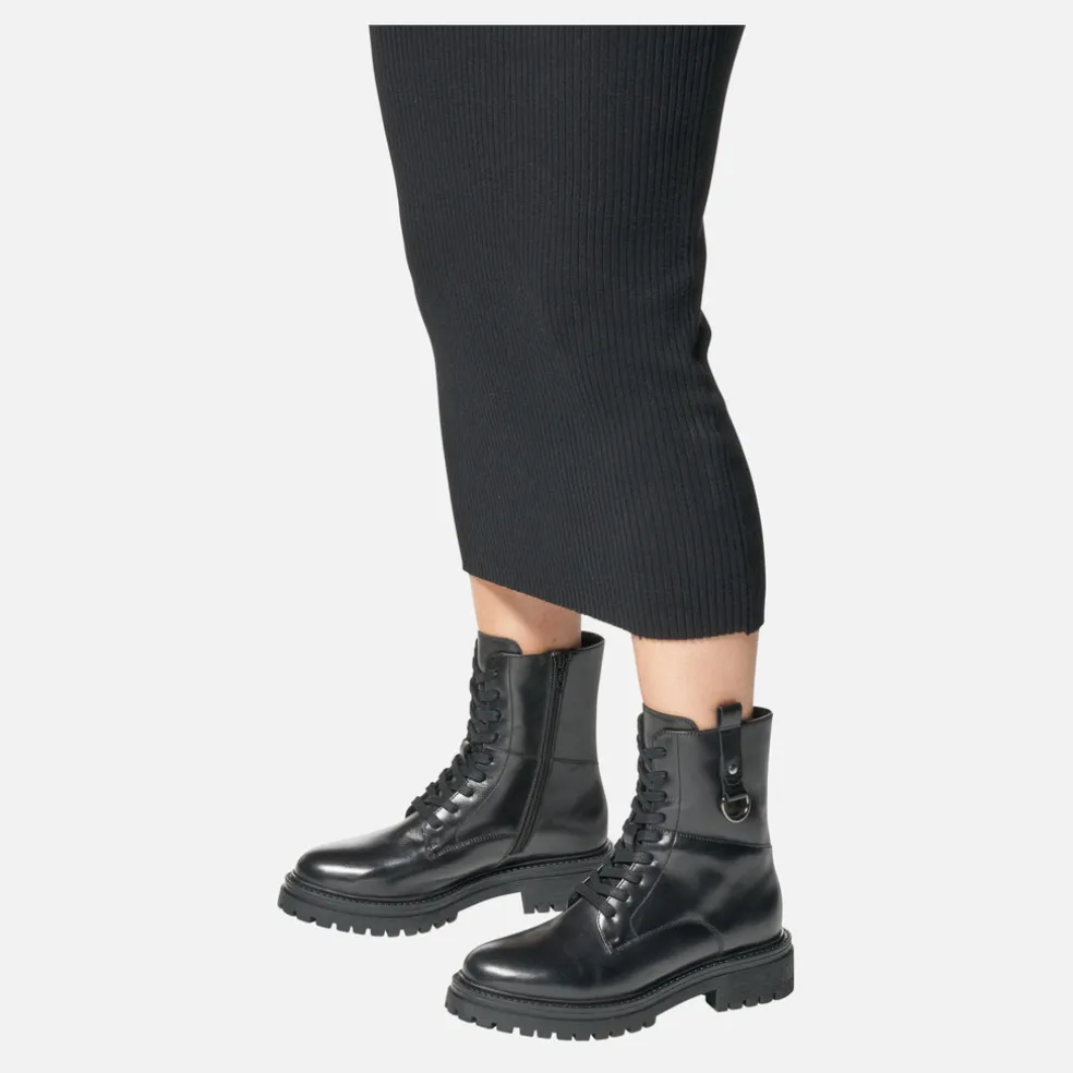 Stivaletto stringato donna comodo e traspirante, dall’attitudine urban quotidiana. Vanta una tomaia realizzata in pelle liscia dal look deciso ed è qui presentato in un’essenziale versione nera. Con il suo accattivante design e la sua grintosa suola carrarmato, Iridea si adatta sia ai look di tutti i giorni in città che a quelli del weekend.