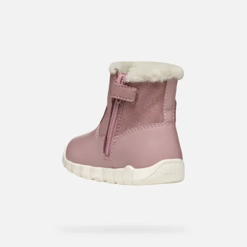 Stivaletto primi passi neonata flessibile e ammortizzato, perfetto per i suoi mini casual look. In questa versione che mixa rosa antico e viola, Iupidoo vanta una tomaia decorata da una delicata applicazione e dettagli in faux-fur. Realizzato in materiale effetto pelle e materiale effetto scamosciato brillante, assicura calore, sostegno e massimo comfort.