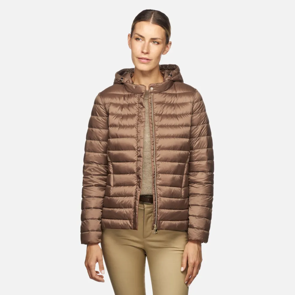 Piumino corto donna imbottito dal design trendy e femminile, con cappuccio staccabile e taglio svasato. Qui proposto in un’accattivante versione marrone bruciato, è perfetto per completare con un tocco moderno i look daily-casual. Realizzato in nylon riciclato trapuntato, Jaysen è un giubbotto caldo ma superleggero, ideale per le mezze stagioni.