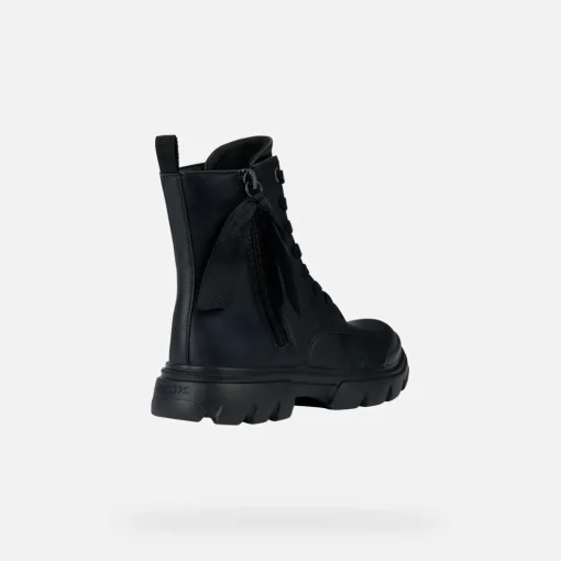 Stivaletto bambina stringato dal design urban, grintoso e contemporaneo. Qui proposto in materiale effetto pelle nero, Junette sfoggia dettagli femminili e un look combat che aggiungono un tocco glam agli outfit di tutti i giorni. Dotato di cerniera laterale con tirazip a fiocco, si fa notare per la caratteristica suola chunky flessibile e superleggera.