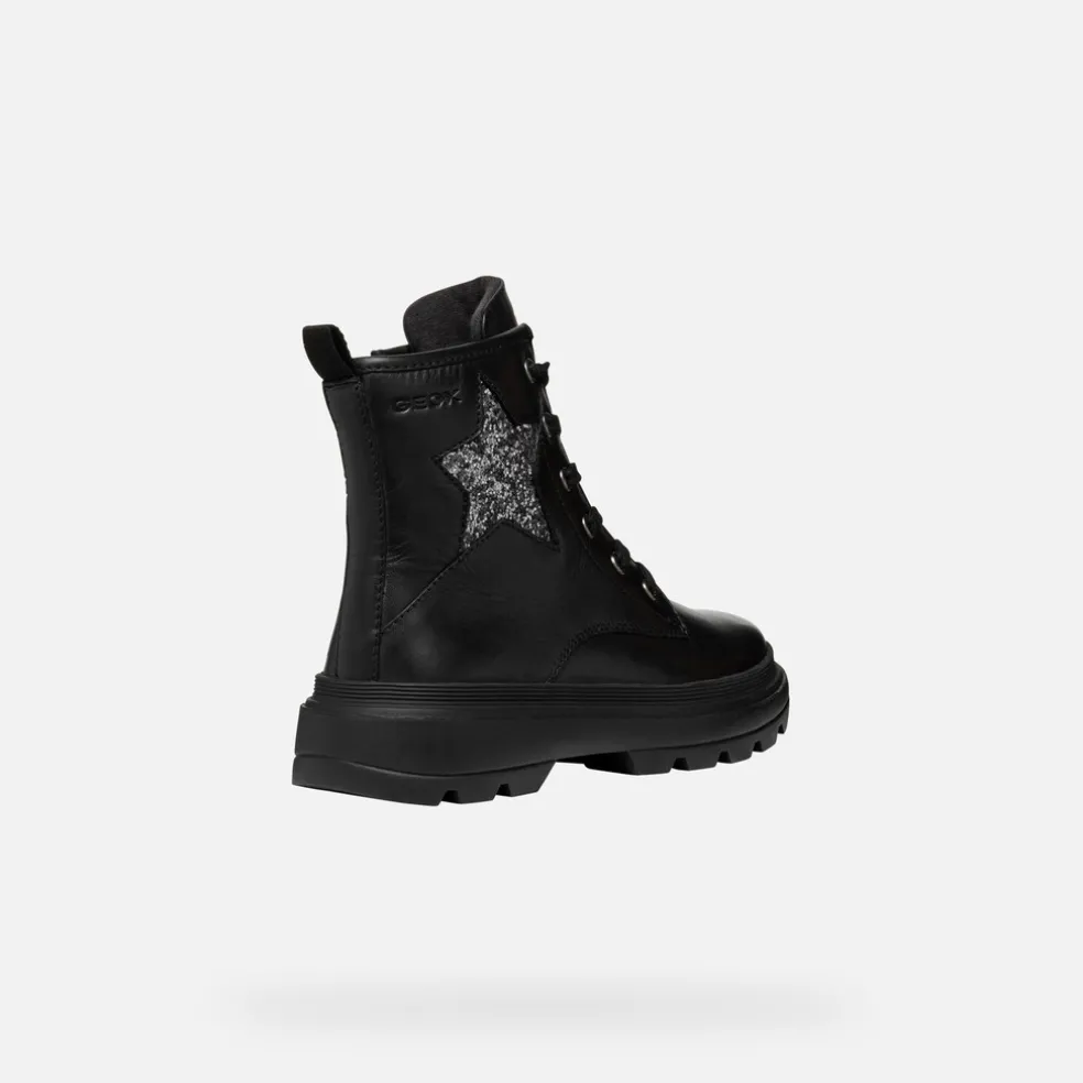 Stivaletto bambina stringato dal look combat, grintoso e contemporaneo. Qui proposto in nero e argento scuro, Kiddartah è arricchito da una suola chunky, confortevole e alla moda. Realizzato in morbida nappa con dettagli in scintillante tessuto glitterato, aggiunge una nota trendy agli outfit di tutti i giorni.