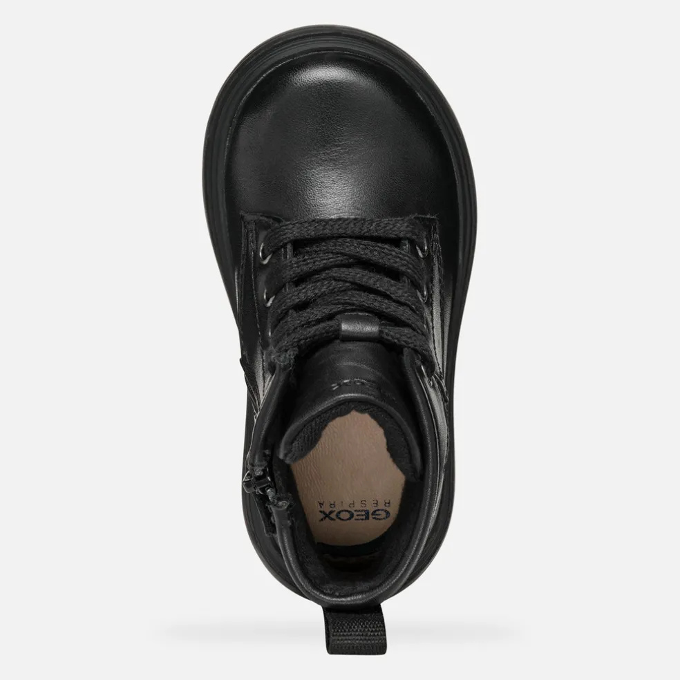 Stivaletto bimba stringato in stile combat con comoda suola chunky. Con la sua tomaia alla moda qui presentata in nero con una brillante applicazione laterale a stella, Kiddartah è perfetto sia per outfit casual sia per le occasioni speciali. Realizzato in morbida nappa e tessuto glitterato, è confortevole, leggero e traspirante.