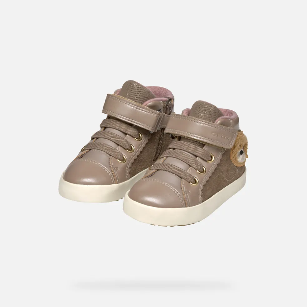 Sneaker mid-cut bimba casual dall’appeal contemporaneo, perfetta per i suoi mini look cittadini. La sua tomaia beige scuro presenta una tenera applicazione laterale, per rallegrare ogni suo passo. Realizzata in morbido scamosciato e materiale effetto pelle perlata, Kilwi offre comfort e traspirazione ottimale.