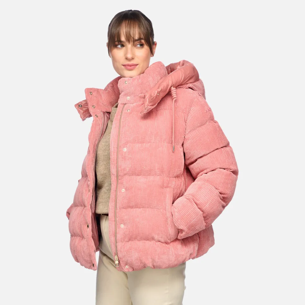 Parka corto donna imbottito, dal design casual aggiornato e dal fit oversize. Qui declinato in una moderna versione rosa scuro, Loisia è un caposalla pratico e funzionale che completa con disinvoltura gli abbinamenti informali. Realizzato in morbido velluto a coste antivento, è dotato di cappuccio regolabile con coulisse e bordo in nylon lucido.