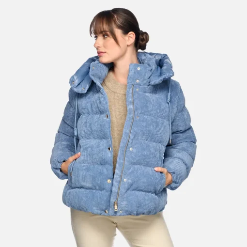 Parka corto donna imbottito, dal design casual aggiornato e dal fit oversize. Qui declinato in un’accattivante azzurro, Loisia è un caposalla pratico e funzionale che completa con disinvoltura gli abbinamenti informali. Realizzato in morbido velluto a coste antivento, è dotato di cappuccio regolabile con coulisse e bordo in nylon lucido.