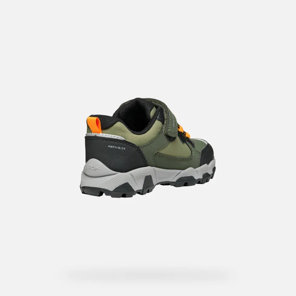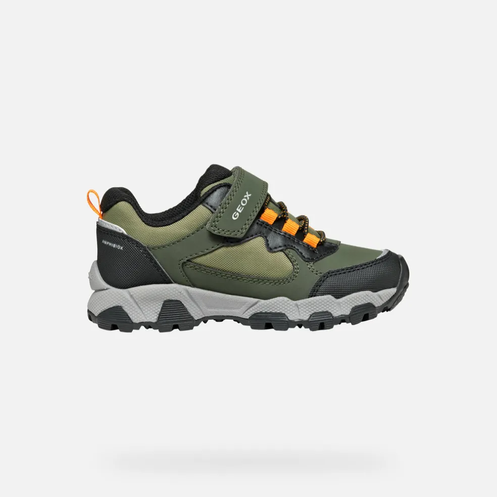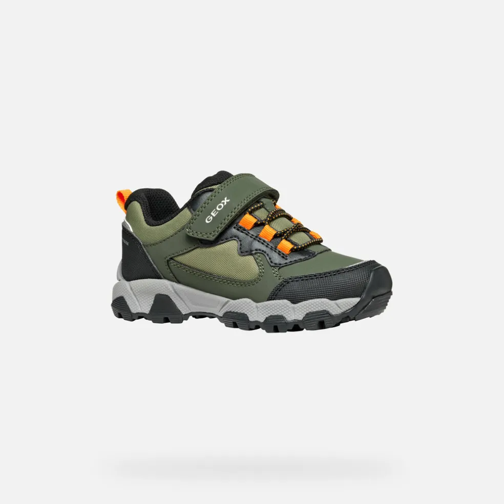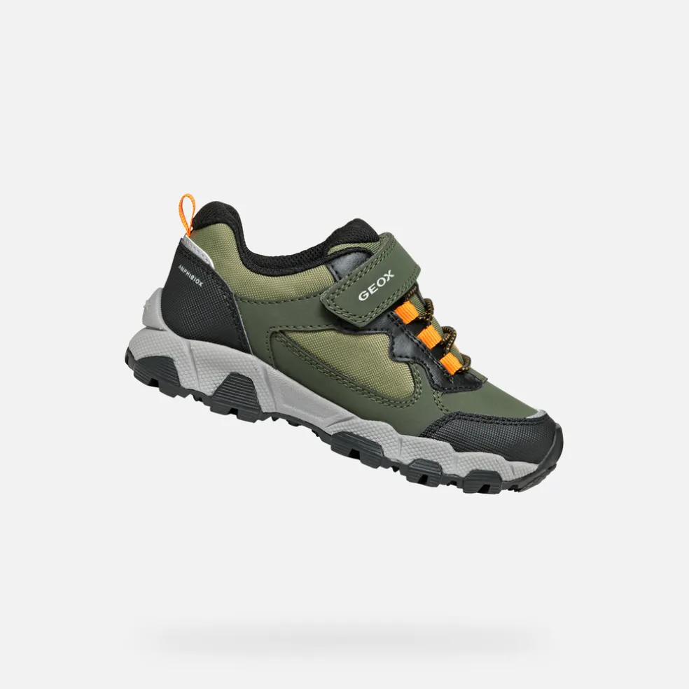 Sneaker low-cut junior d’ispirazione outdoor, calda e impermeabile. In questa variante verde scuro con dettagli arancione chiaro, Magnetar ABX presenta una confortevole tomaia in materiale effetto pelle e nylon. Traspirante e ammortizzata, unisce stile e massima protezione anche nelle giornate di pioggia intensa.