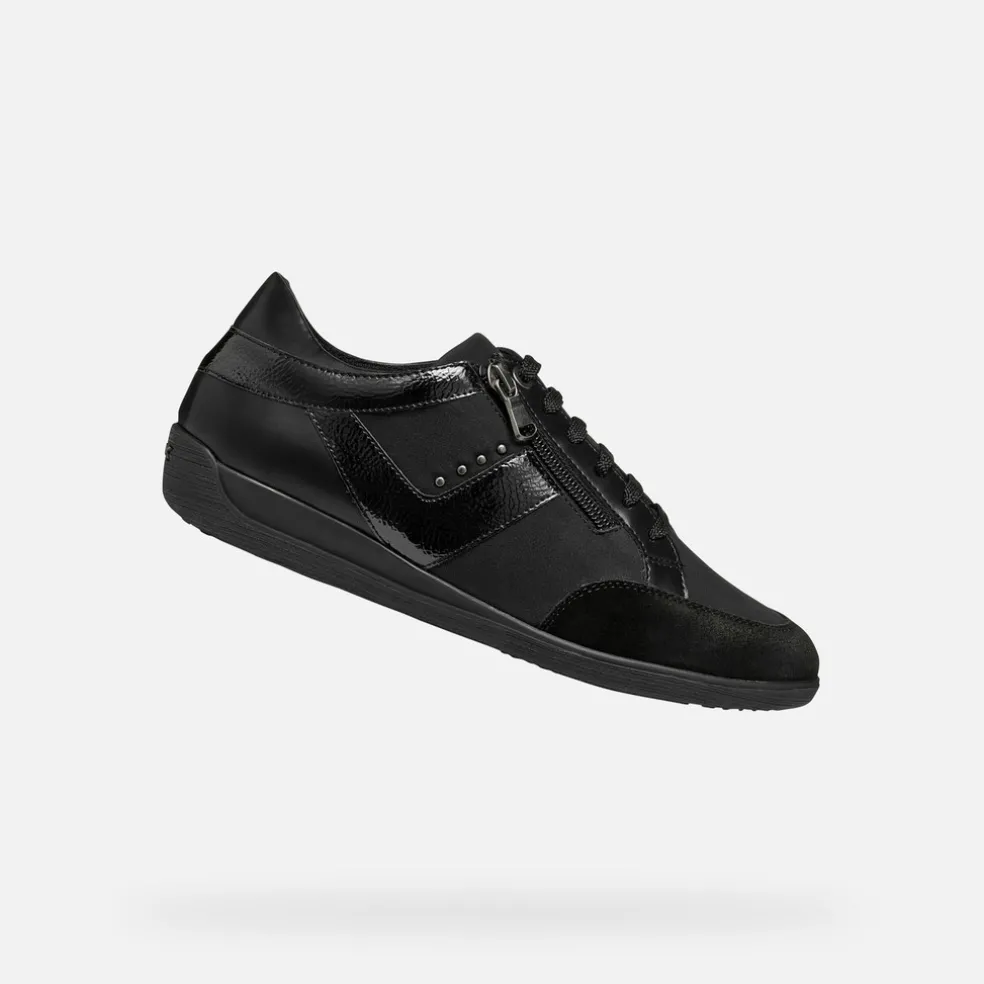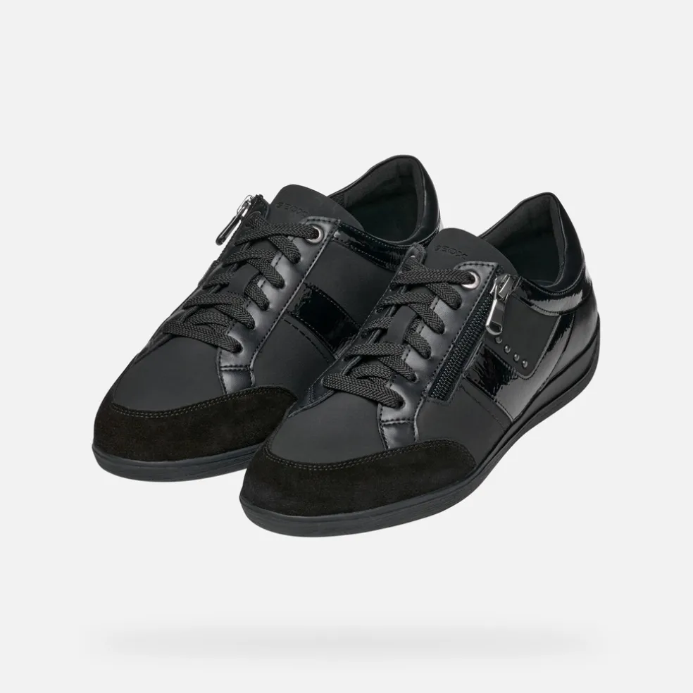 Sneaker low-cut donna con pratica zip laterale dal look casual e moderno, perfetta per la vita in città. Confortevole e traspirante, vanta una tomaia in materiale effetto nabuk e materiale effetto vernice ed è qui declinata in una versatile variante nera dall’attitudine grintosa. Leggera e facile da calzare, Myria è una scarpa sportiva e assolutamente quotidiana, che completa con disinvoltura gli abbinamenti informali.