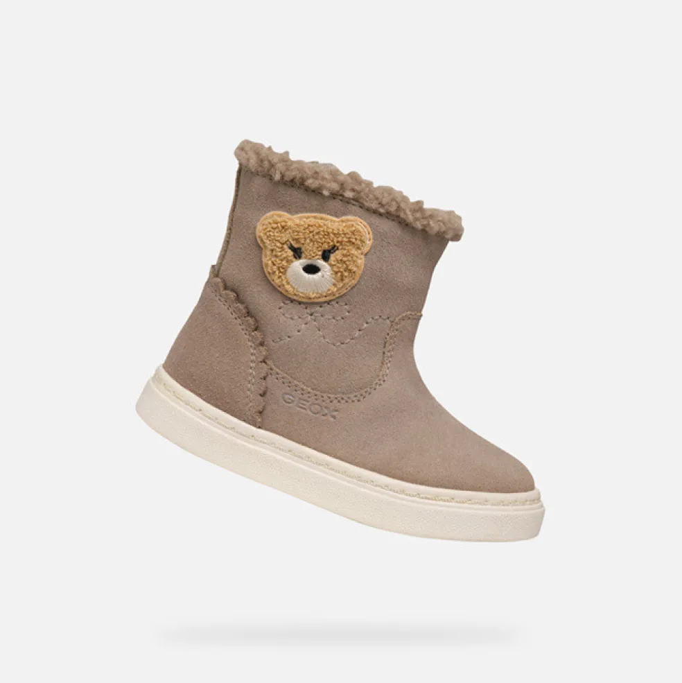 Stivaletto bimba romantico e femminile, perfetto per impreziosire i suoi outfit casual quotidiani. In questa versione beige scuro, Nashik sfoggia linee minimali e una tenera applicazione a orsetto sulla tomaia. Realizzato in morbido scamosciato con dettagli in faux-fur, è caldo, traspirante e garanzia di massimo comfort.