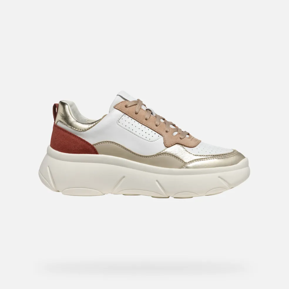 Sneaker donna dallo stile contemporaneo e dal design ergonomico. Qui proposta in una luminosa versione che accosta bianco e oro chiaro, presenta una tomaia in morbida nappa e pelle metallizzata in perfetto stile casual-chic. Con la sua suola chunky trendy e ultra traspirante, Nebula™ 2.0 X ha un look sportivo ma al contempo femminile.