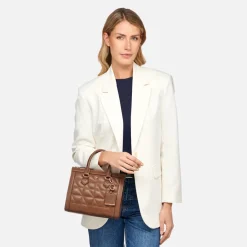 Borsa shopping donna di dimensione media, dall’estetica contemporanea e dal dna cittadino. Realizzata in morbida pelle bottalata e arricchita da una lavorazione matelassé, è qui presentata in una calda e versatile tonalità fango. Quotidiana ma al contempo ultra femminile, Olympiy è dotata di doppio manico e di una pratica tracolla, ed è perfetta dall’ufficio al tempo libero.Indosso a mano o a tracolla.Chiusura con zip in metallo.Tracolla regolabile e removibile.Borchietta decorativa.Due tasche interne.Portachiavi removibile con targhetta in pelle.Accessori metallici con finitura oro.Dimensioni: L 24 cm x W 9 cm x H 21,5 cm.
