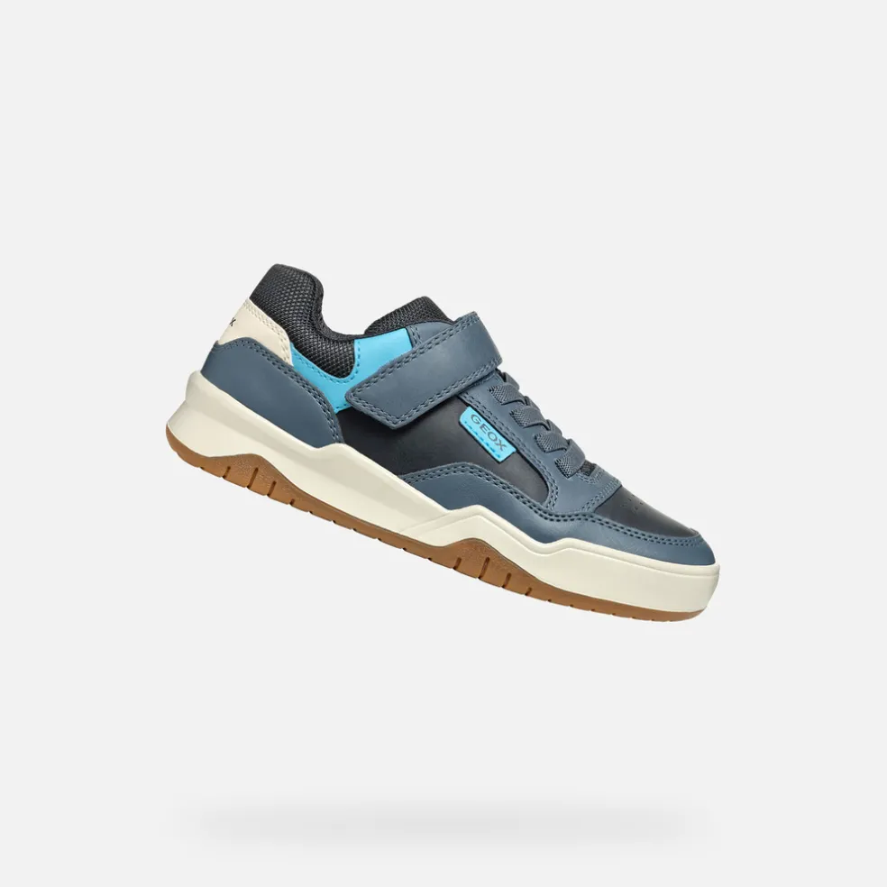 Sneaker low-cut bambino dal design moderno e trendy, ideale per abbinamenti casual o sportivi. Dotata di strap e lacci elastici, in questa variante avio e azzurro scuro, Perth abbina materiale effetto pelle cerata e nylon. Leggera e traspirante, è un modello versatile che completa con disinvoltura gli outfit di tutti i giorni, a scuola o nei momenti di gioco.