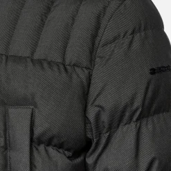 Giubbotto lungo uomo regular fit, vero must-have del guardaroba cittadino anti-freddo. Proposto in tessuto di poliestere con micro stampa, idrorepellente e resistente al vento, Sandford è declinato in un’intrigante tonalità nero intenso. Dotato di cappuccio staccabile e quattro pratiche tasche esterne, presenta una calda imbottitura in ovatta riciclata EcologicWARM.