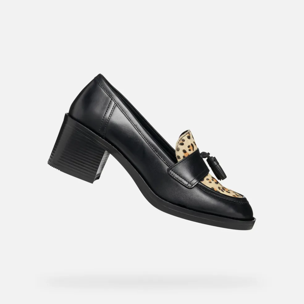 Scarpa donna con nappine e comodo tacco largo dal dna cittadino e dallo stile contemporaneo. Proposto in una particolare versione che accosta nero e cognac, presenta una tomaia in pelle liscia arricchita da un inserto effetto cavallino con stampa animalier. Confortevole e traspirante, Serilda 60 completa i business look e gli outfit delle occasioni formali con una nota grintosa.