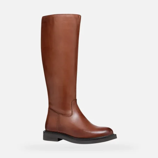 Stivale alto donna traspirante e confortevole con comodo tacco basso, dal gusto moderno ricercato. Realizzato in pelle liscia, è qui proposto in versione marrone chiaro, minimal e dalle linee contermporanee. Versatile e cittadino, Serilda è perfetto per le uscite informali e per completare i look da ufficio con un tocco di classe.