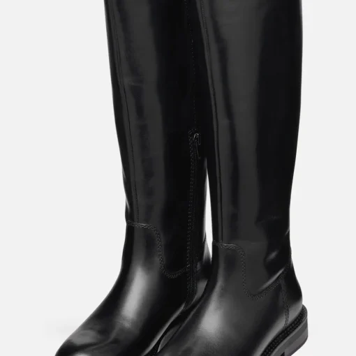 Stivale alto donna traspirante e confortevole con comodo tacco basso, dal gusto moderno ricercato. Realizzato in pelle liscia, è qui proposto in versione nera, minimal e dalle linee contermporanee. Versatile e cittadino, Serilda è perfetto per le uscite informali e per completare i look da ufficio con un tocco di classe.