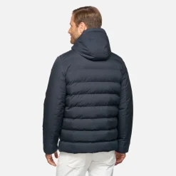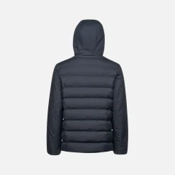 Giubbotto corto uomo funzionale e confortevole, dallo stile contemporaneo e quotidiano. Qui declinato in una sobria e versatile varianteblu notte, Sile presenta trapuntatura su corpo e cappuccio, a contrasto con le maniche lisce. Proposto in twill di poliestere dall’aspetto opaco, idrorepellente e antivento, sfoggia abbottonatura nascosta e imbottitura in calda ovatta riciclata EcologicWARM.