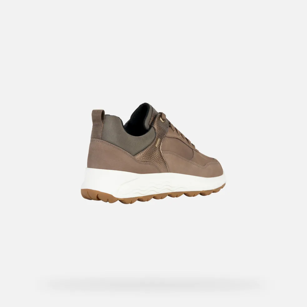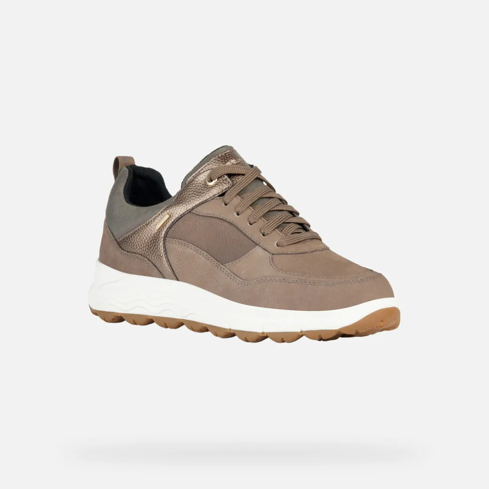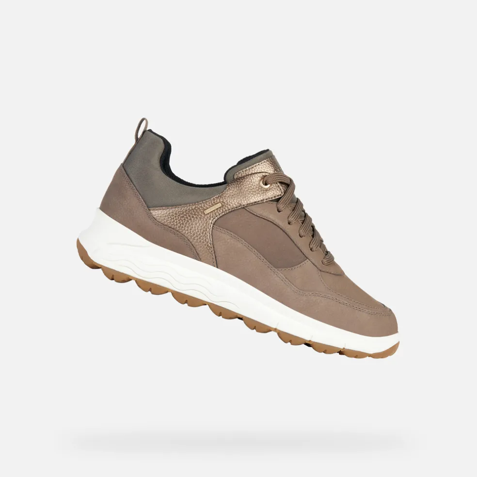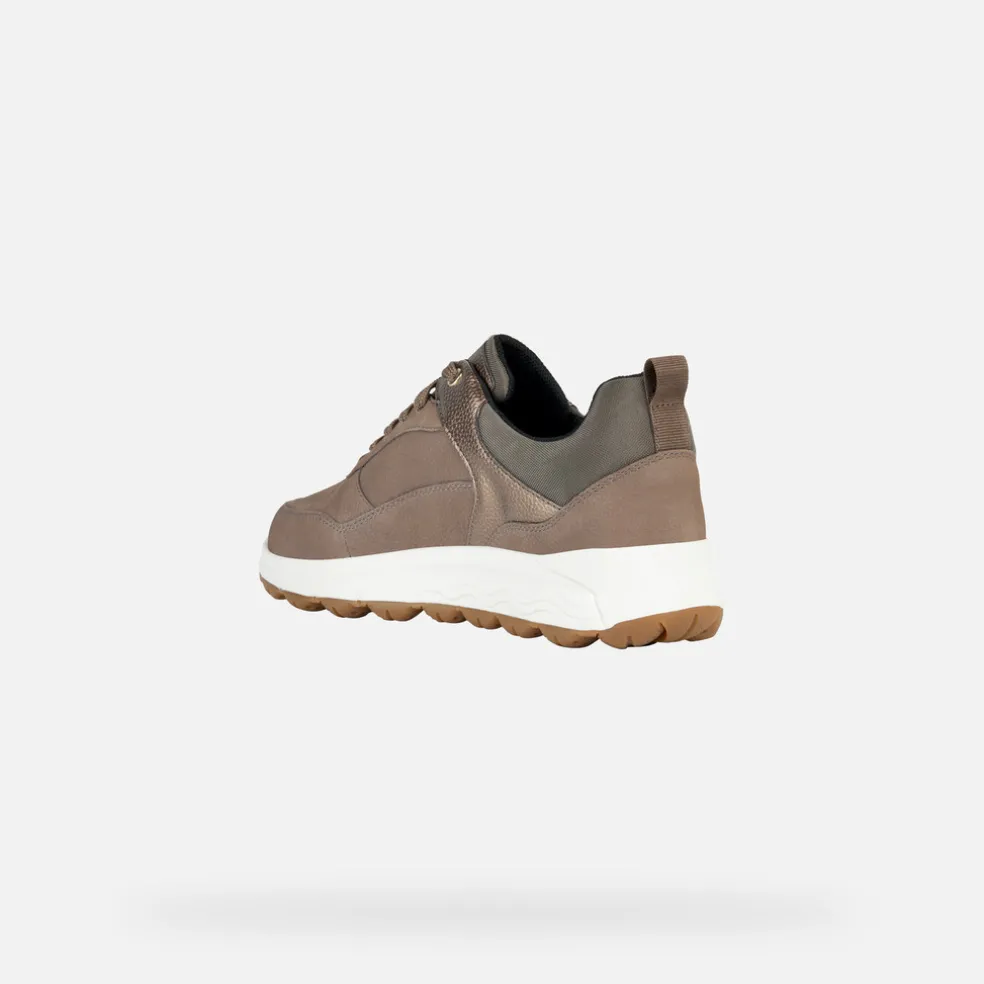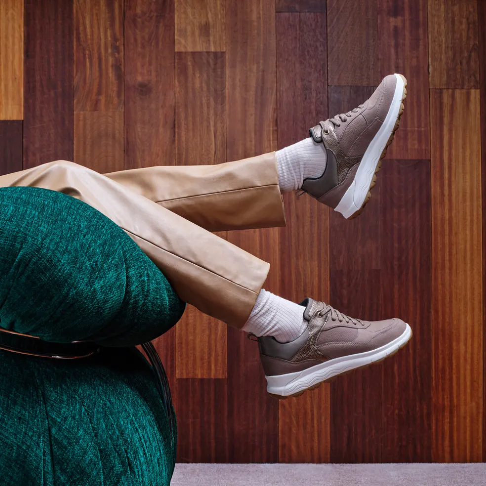 Sneaker donna dal design moderno di ispirazione running, che assicura massima impermeabilità. Realizzata in pelle nabuk stampata e materiale effetto pelle bottalata metallizzata, in questa variante taupe scuro e piombo ha un’allure raffinata e femminile. Adatta anche in caso di maltempo, Spherica™ 4X4 ABX completa i look casual e gli outfit del tempo libero offrendo ammortizzazione e traspirabilità.