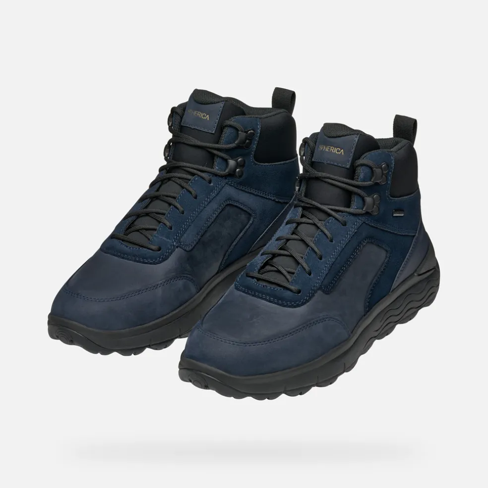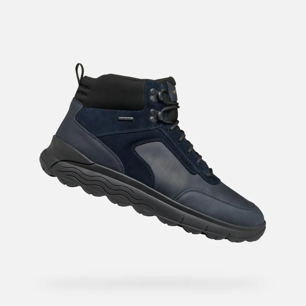 Stivaletto uomo impermeabile, che fonde attitudine sportiva e stile casual contemporaneo. Qui declinato in un’intramontabile tonalità blu navy, vanta una tomaia realizzata in pelle pull up e scamosciato arricchita da dettagli hiking. Ideale sia in città che nel tempo libero, Spherica™ 4×4 ABX garantisce piedi asciutti ed eccellente ammortizzazione anche sotto la pioggia intensa.