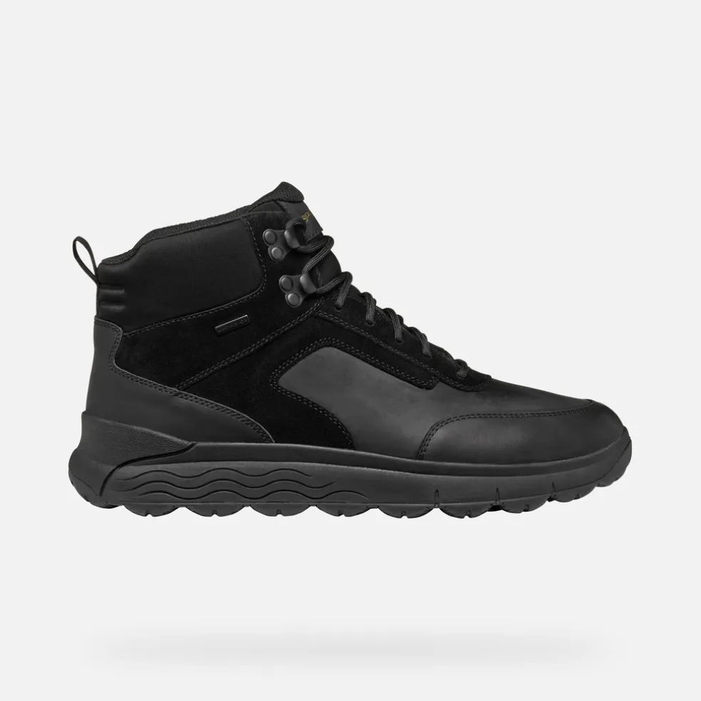 Stivaletto uomo impermeabile, che fonde attitudine sportiva e stile casual contemporaneo. Qui declinato in un’essenziale tonalità nera, vanta una tomaia realizzata in pelle pull up e scamosciato arricchita da dettagli hiking. Ideale sia in città che nel tempo libero, Spherica™ 4×4 ABX garantisce piedi asciutti ed eccellente ammortizzazione anche sotto la pioggia intensa.