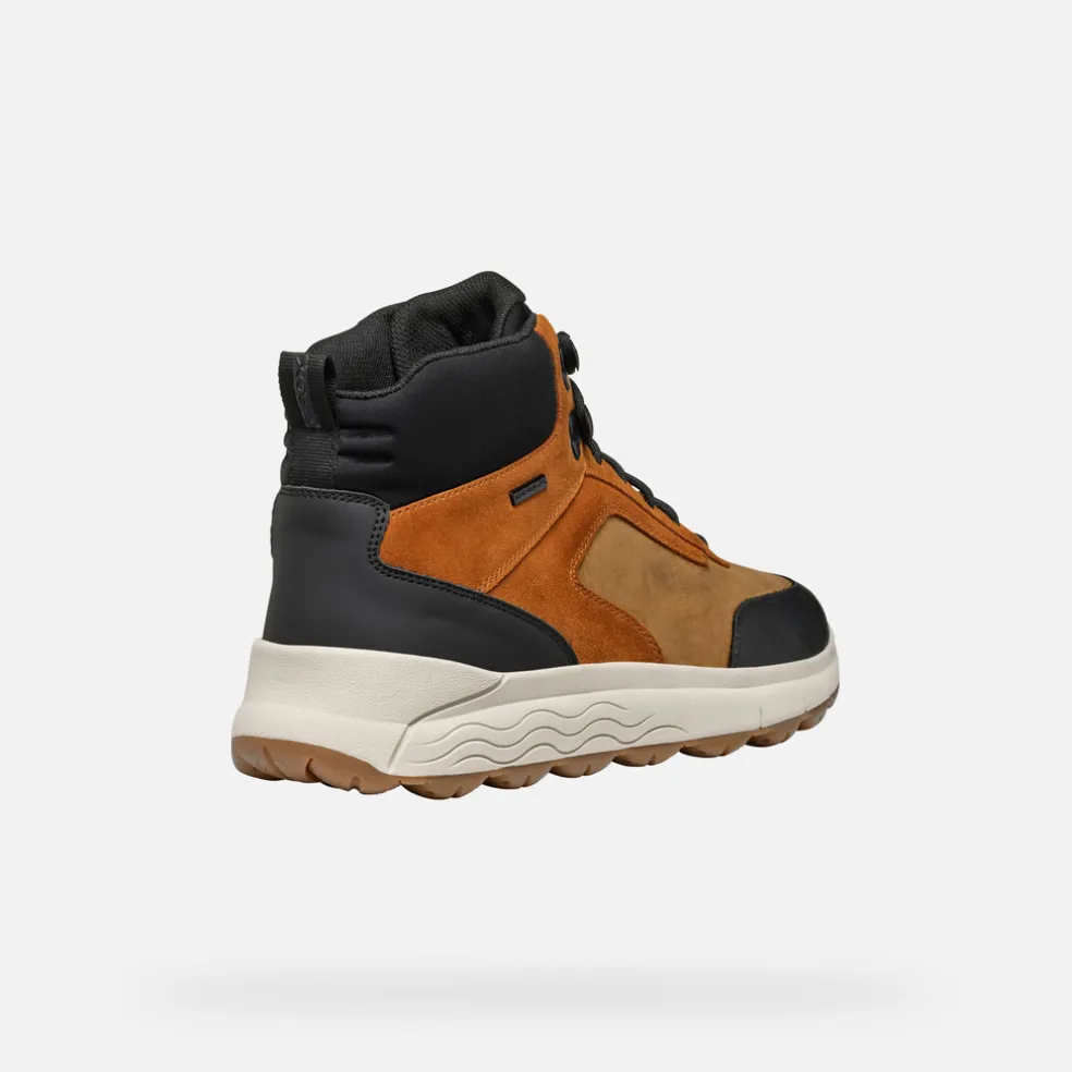 Stivaletto uomo impermeabile, che fonde attitudine sportiva e stile casual contemporaneo. Qui declinato in una vivace e originale tonalità ocra, vanta una tomaia realizzata in pelle pull up e scamosciato arricchita da dettagli hiking. Ideale sia in città che nel tempo libero, Spherica™ 4×4 ABX garantisce piedi asciutti ed eccellente ammortizzazione anche sotto la pioggia intensa.
