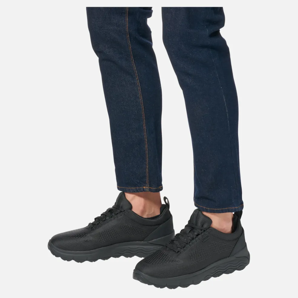 Sneaker uomo impermeabile e super ammortizzata, dal design urban di ispirazione running. La sua particolare tomaia in tessuto jacquard è qui declinata in una versatile e classica variante nera. Garanzia di una camminata leggera e confortevole, Spherica™ 4X4 ABX è perfetta per affrontare con slancio anche le giornate di pioggia intensa.