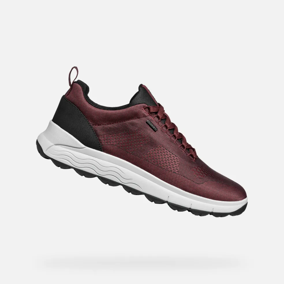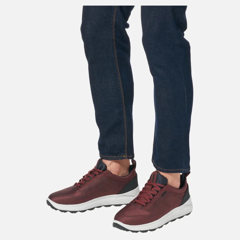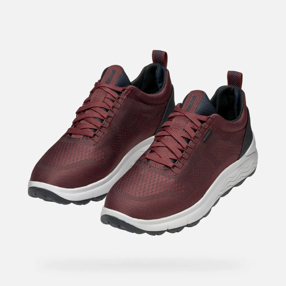 Sneaker uomo impermeabile e super ammortizzata, dal design urban di ispirazione running. La sua particolare tomaia in tessuto jacquard è qui declinata in una variante che accosta bordeaux e blu navy. Garanzia di una camminata leggera e confortevole, Spherica™ 4X4 ABX è perfetta per affrontare con slancio anche le giornate di pioggia intensa.