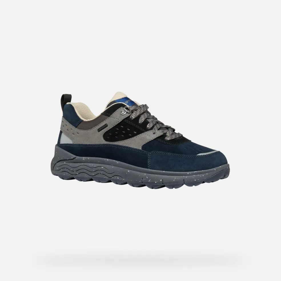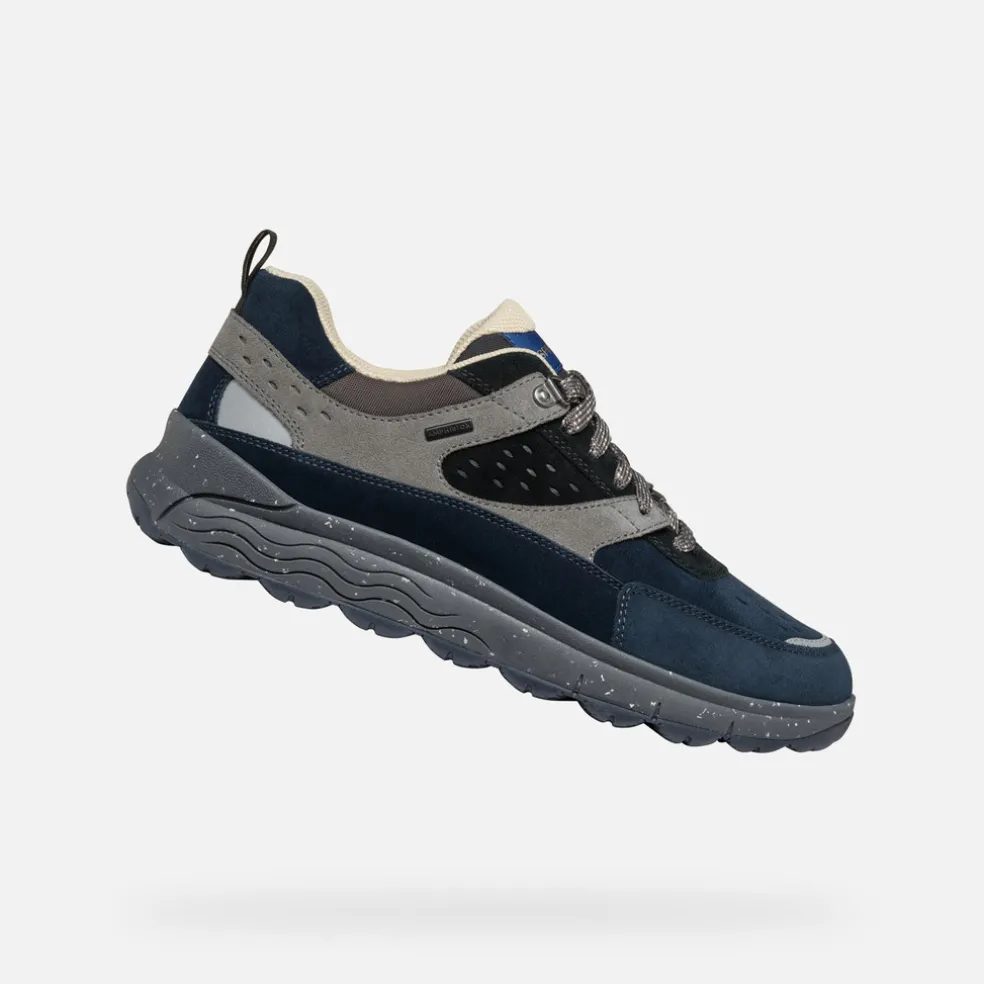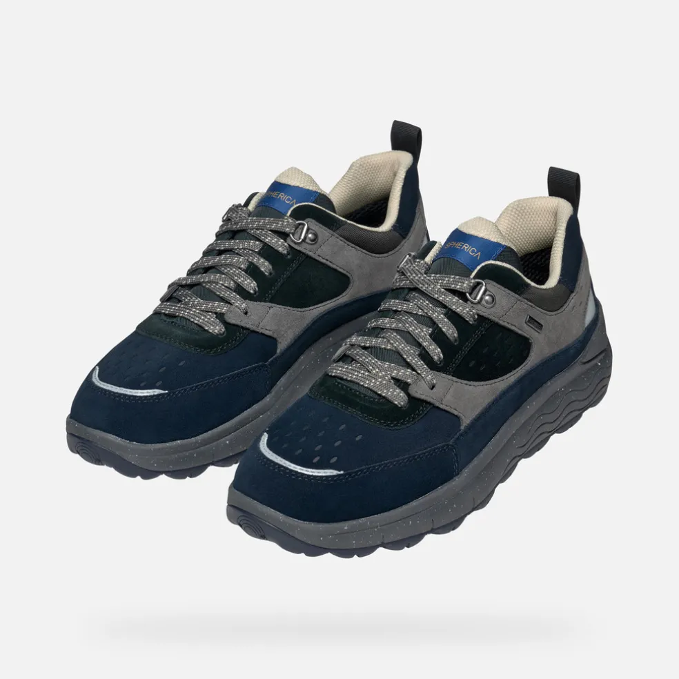 Sneaker uomo impermeabile e super ammortizzata, dal design urban di ispirazione running. La sua particolare tomaia in scamosciato gioca con i contrasti e conquista per il suo carattere modeno in questa versione che accosta blu navy e grigio scuro. Garanzia di una camminata leggera e confortevole, Spherica™ 4X4 ABX è perfetta per affrontare con slancio anche le giornate di pioggia intensa.
