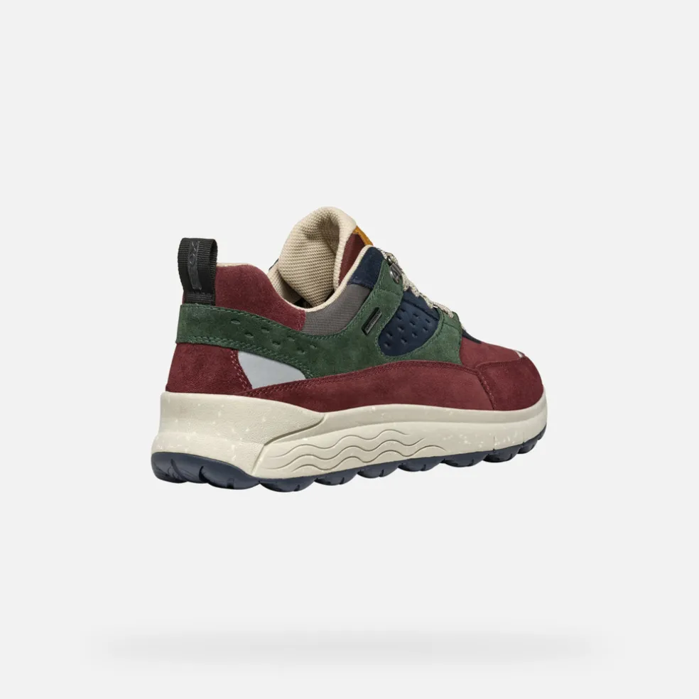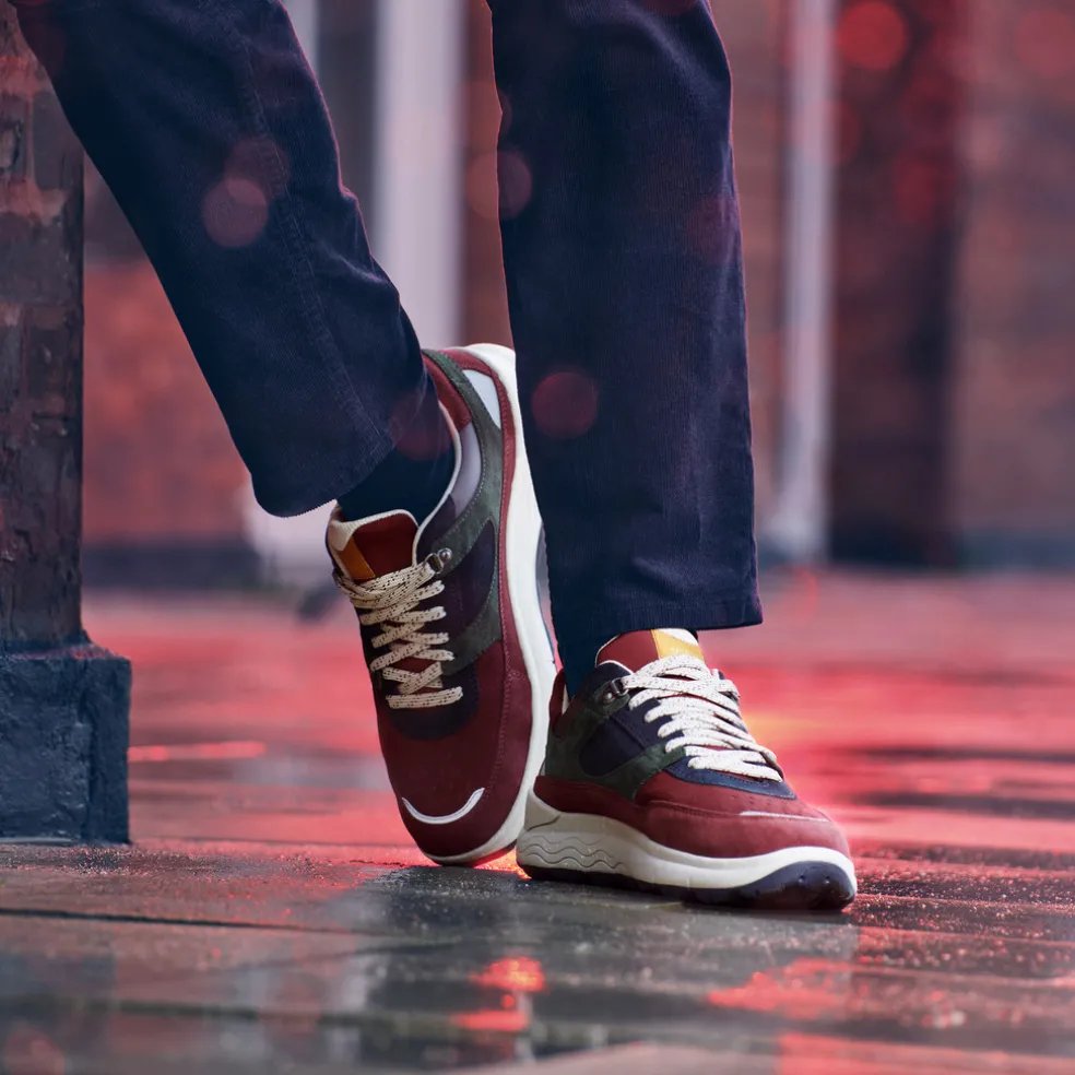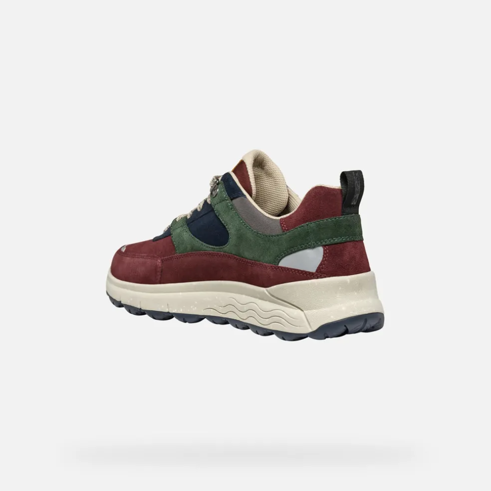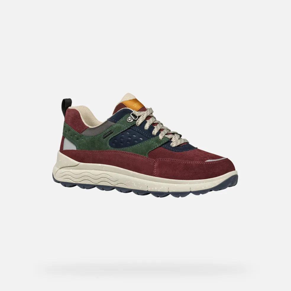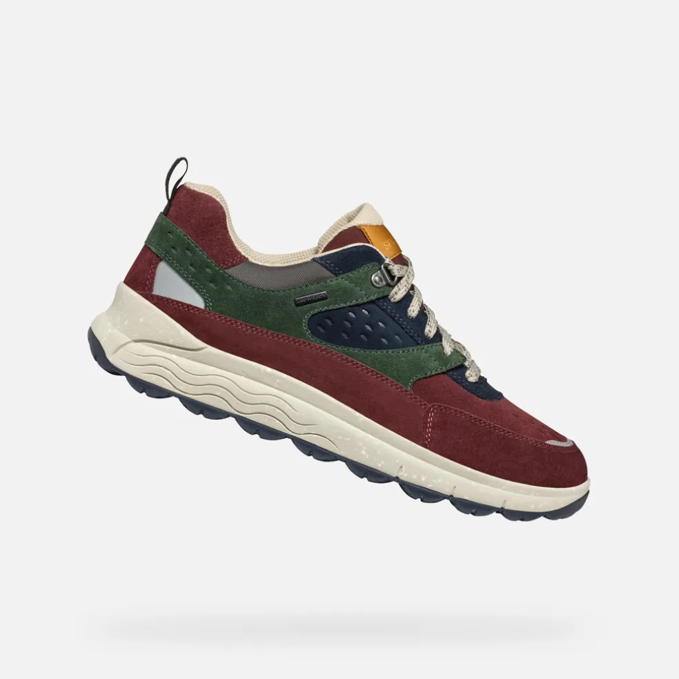 Sneaker uomo impermeabile e super ammortizzata, dal design urban di ispirazione running. La sua particolare tomaia in scamosciato gioca con i contrasti e conquista per il suo carattere grintoso in questa versione che accosta bordeaux e verde scuro. Garanzia di una camminata leggera e confortevole, Spherica™ 4X4 ABX è perfetta per affrontare con slancio anche le giornate di pioggia intensa.